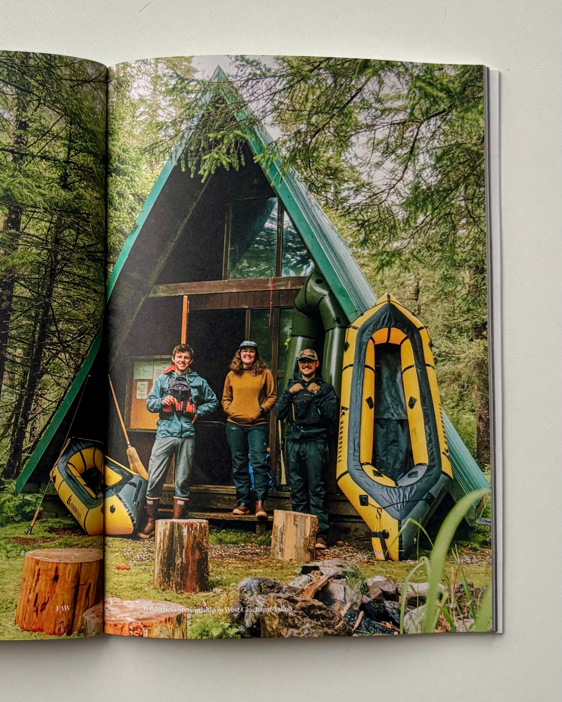 What’s on the front? Rafters Below Big Chief, shot by Alex Kelsey in West Chichagof-Yakobi Wilderness, Alaska. Guaranteed to pop alongside your other cool outdoor mags.